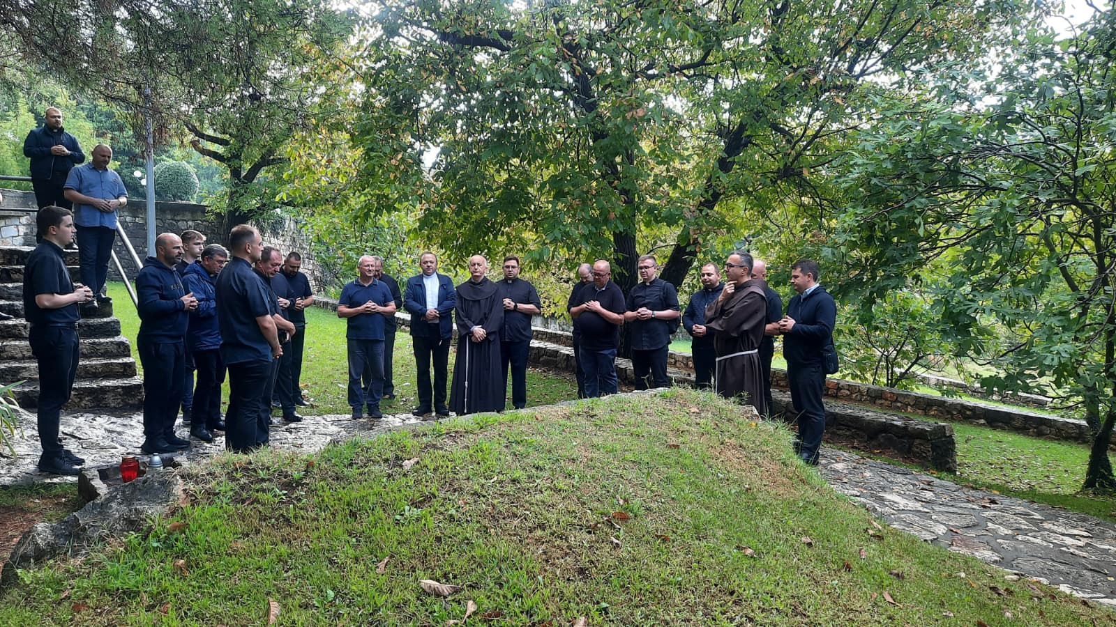 Široki Brijeg, 25. rujna 2025. (Lucijana Kožul) – Danas su samostan i vicepostulaturu na Širokom Brijegu posjetili svećenici i bogoslovi iz Požeške biskupije, među kojima je bio i požeški biskup mons. Ivo Martinović te župnik i voditelj svetišta Gospe od Suza u Pleternici vlč. Dragan Hrgić. Kako veliki broj svećenika pomaže ispovijedati u svetištu Gospe od Suza u Pleternici, organizirano je hodočašće u znak zahvale tim svećenicima.