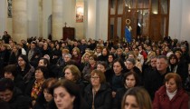 Široki Brijeg, 6. veljače 2020. (Ivana Karačić) – Večeras je u samostanskoj crkvi Uznesenja BDM na Širokom Brijegu nastavljen molitveni program »X. dana pobijenih hercegovačkih franjevaca« u prigodi 75. obljetnice njihova ubojstva. Molitva krunice uobičajeno je započela u 17.30, a zatim je u 18.00 uslijedila sv. misa zadušnica koju je predslavio don Filip Kucelin, postulator postupka mučeništva »Don Eugen Šutrin i drugovi«, uz sumisništvo vicepostulatora fra Miljenka Stojića i fratara iz širokobriješkog samostana. Prostrana samostanska crkva bila je ispunjena vjernicima.