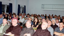 Čerin, 20. rujna 2012. (Marin Jurković / hrsvijet.net) – Dvorana katehetskog centra u župi sv. Stjepana na Čerinu bila je pretijesna da primi sve one koji su u srijedu navečer, 19. rujna, željeli nazočiti književnoj manifestaciji »Susreti pod hrastom« koja je ove godine posvećena pisanoj riječi hercegovačkog franjevca i književnika fra Miljenka Stojića.