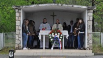 Podadrežanj, 21. travnja 2014. (citluk.ba) – Danas je u Podadrežnju slavljenjem sv. mise obilježena 68. obljetnica pogibije petorice hrvatskih časnika i dočasnika Drugog svjetskog rata. Tradicionalno misno slavlje na Uskrsni ponedjeljak predvodio je fra Miljenko Mića Stojić, vicepostulator postupka mučeništva »Fra Leo Petrović i 65 subraće« uz suslavlje dekana Broćanskog dekanata i župnika župe Čerin fra Darija Dodiga te uz nazočnost brojnih vjernika.