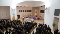 Humac, 17. veljače 2014. (MIRIAM) – Nakon Širokog Brijega (7. veljače), Zagreba (7. veljače), Tomislavgrada (9. veljače), Mostara (14. veljače) te mnogih drugih župa diljem Hercegovine također je i u humačkoj župi u nedjelju,16. veljače, na vrlo svečan način slavljena sv. misa za pobijene fratre i puk s područja ljubuške općine. U 18.00 u prepunoj crkvi puka Božjega, svih starosnih dobi, a posebno je bio uočljiv veliki broj mladih, sv. misu je predslavio humački gvardijan fra Velimir Mandić u suslavlju s provincijalom fra Miljenkom Štekom, vicepostulatorom fra Miljenkom Stojićem i 23 fratra svećenika.