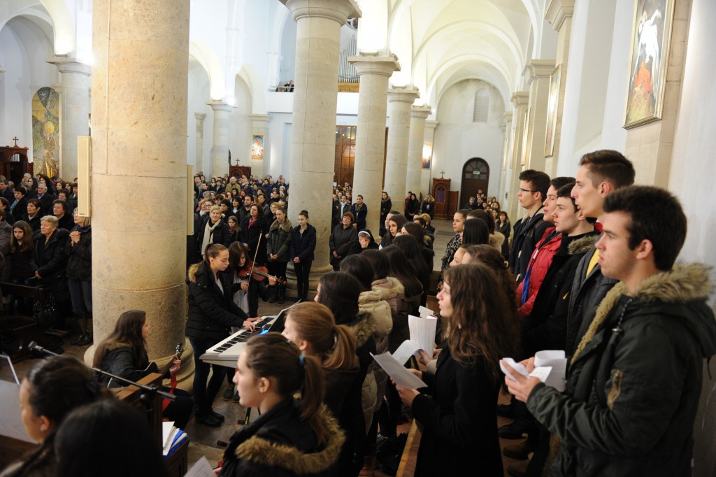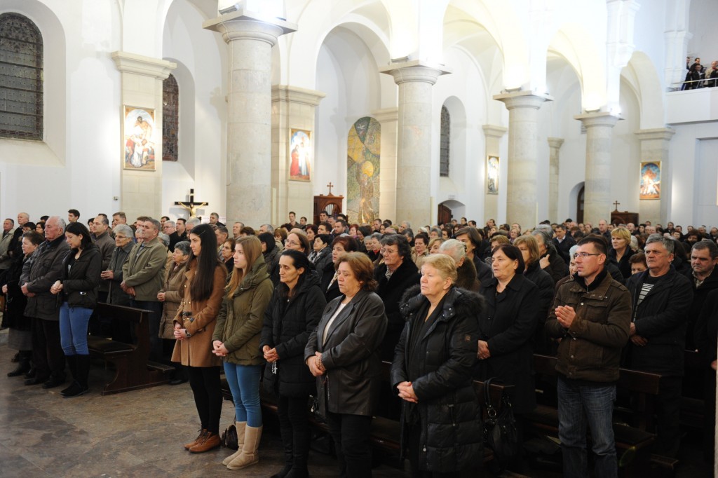 Mostar, 13. veljače 2014. (Josipa Vukoja / Vicepostulatura) – Sinoć je, 12. veljače, u 18.00 u katedrali Marije Majke Crkve i Kraljice neba u Mostaru održana sveta misa zadušnica za pobijene u Drugom svjetskom ratu i poraću, koju je predvodio biskup Mile Bogović, uz sumisništvo druge dvojice biskupa i 20-ak svećenika te zamjetan broj puka Božjega. Nakon toga je u Velikoj katedralnoj dvorani predstavljen zbornik Hrvatski mučenici i žrtve iz vremena komunističke vladavine.
