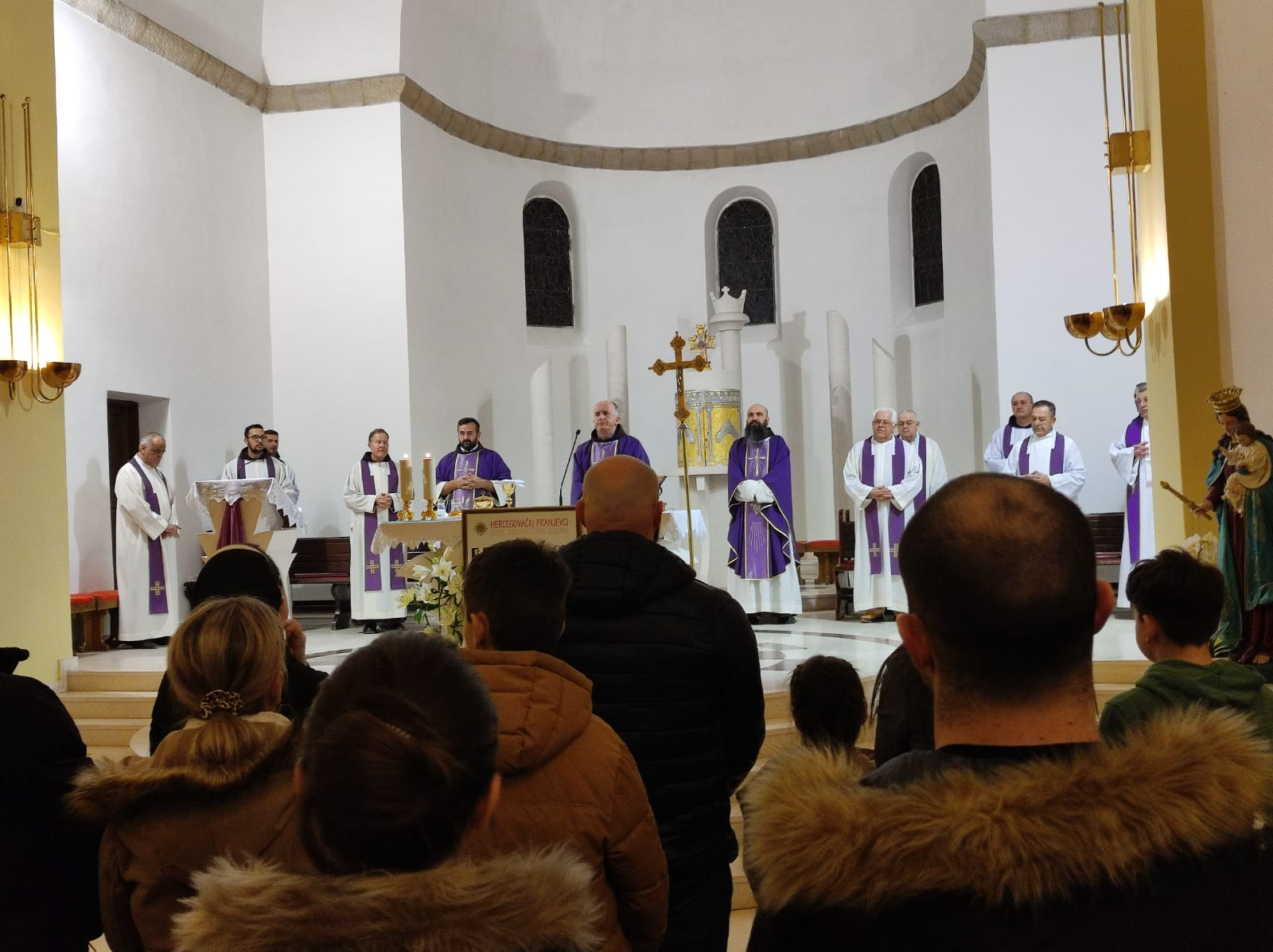 Tomislavgrad, 13. veljače 2022. (tomislavcity.com) – Večeras je, 13. veljače, u duvanjskoj spomen-bazilici slavljena sv. misa zadušnica za pobijene hercegovačke franjevce i vjernički puk tijekom Drugoga svjetskoga rata i poraća te za žrtve svih ratova. Misno slavlje, u sumisništvu 12-orice svećenika, predslavio je fra Miljenko Stojić, vicepostulator postupka mučeništva »Fra Leo Petrović i 65 subraće«, a uvodno su pročitana imena pobijenih svećenika od kojih za 29-oricu još nije poznato grobno mjesto.