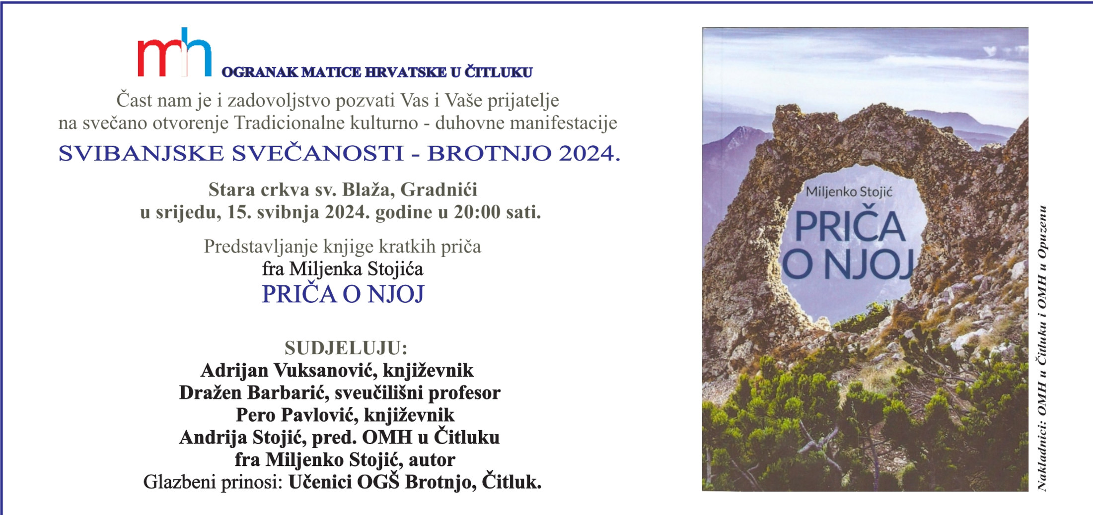 Ogranak Matice hrvatske Čitluk organizator je manifestacije »Svibanjske svečanosti – Brotnjo 2024.«. Nakladnici knjige »Priča o njoj« su ogranci Matice hrvatske iz Čitluka i Opuzena.