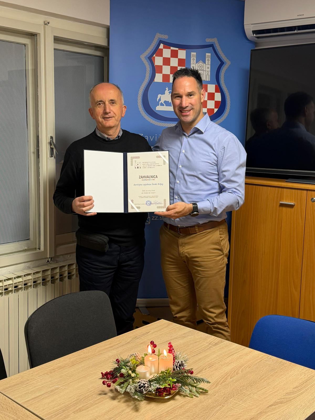 Zagreb, 12. prosinca 2025. (Lucijana Kožul) – Sinoć je, 11. prosinca, »Zavičajna zajednica Široki Brijeg« u svojim prostorijama u Ilici imala domjenak nakon izuzetno uspješnog obilježavanja 35. obljetnice rada. U toj prigodi vicepostulator fra Miljenko Stojić uručio im je zahvalnicu za potporu u radu Vicepostulature postupka mučeništva »Sluge Božje fra Andrija Topić i 49 braće«. U ime članova Zajednice Zahvalnicu je primio predsjednik Frano Spajić.